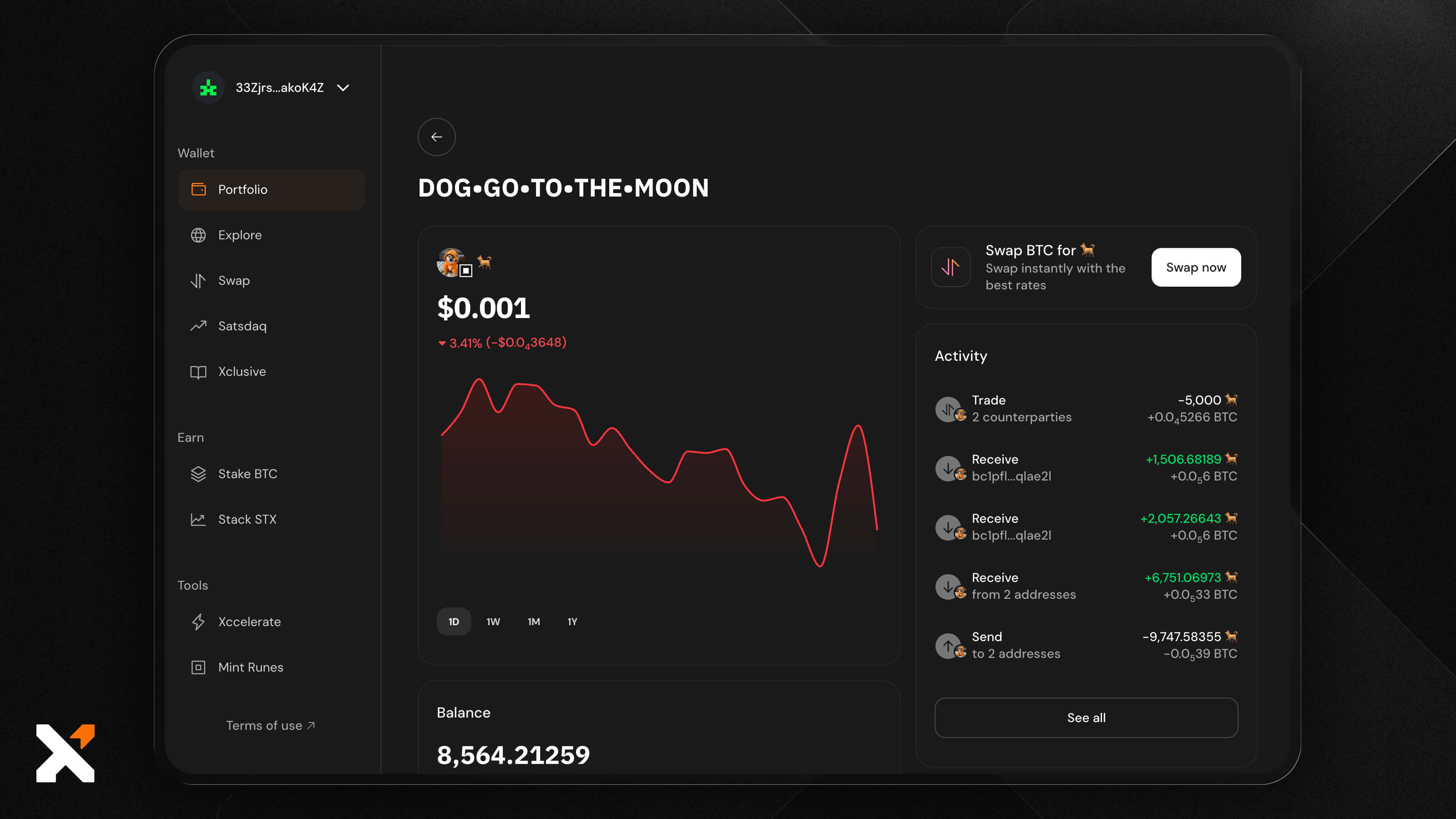 If you’re ready to start building your own crypto portfolio, the Xverse wallet and Portfolio feature are your best place to start. Explore everything from analytics and in-depth asset overview, to new launches on the Satsdaq platform, to quick swaps between your favorite tokens.