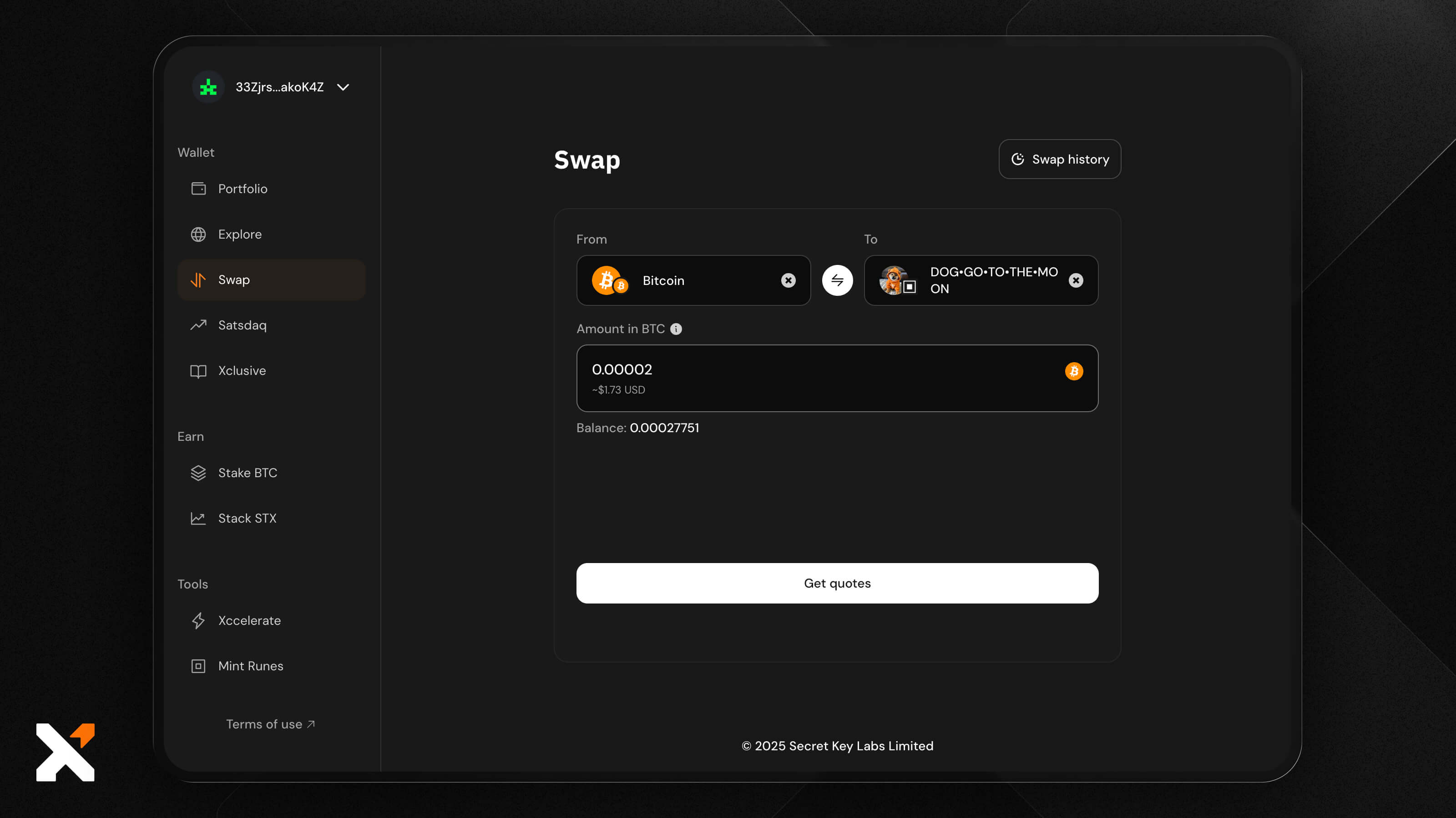 Regardless of which road you’re taking, the Xverse Swap feature is a great way to quickly exchange one asset for another. When you initiate a swap, you'll get quotes from different providers, so you can make sure you’re always choosing what’s best for you.