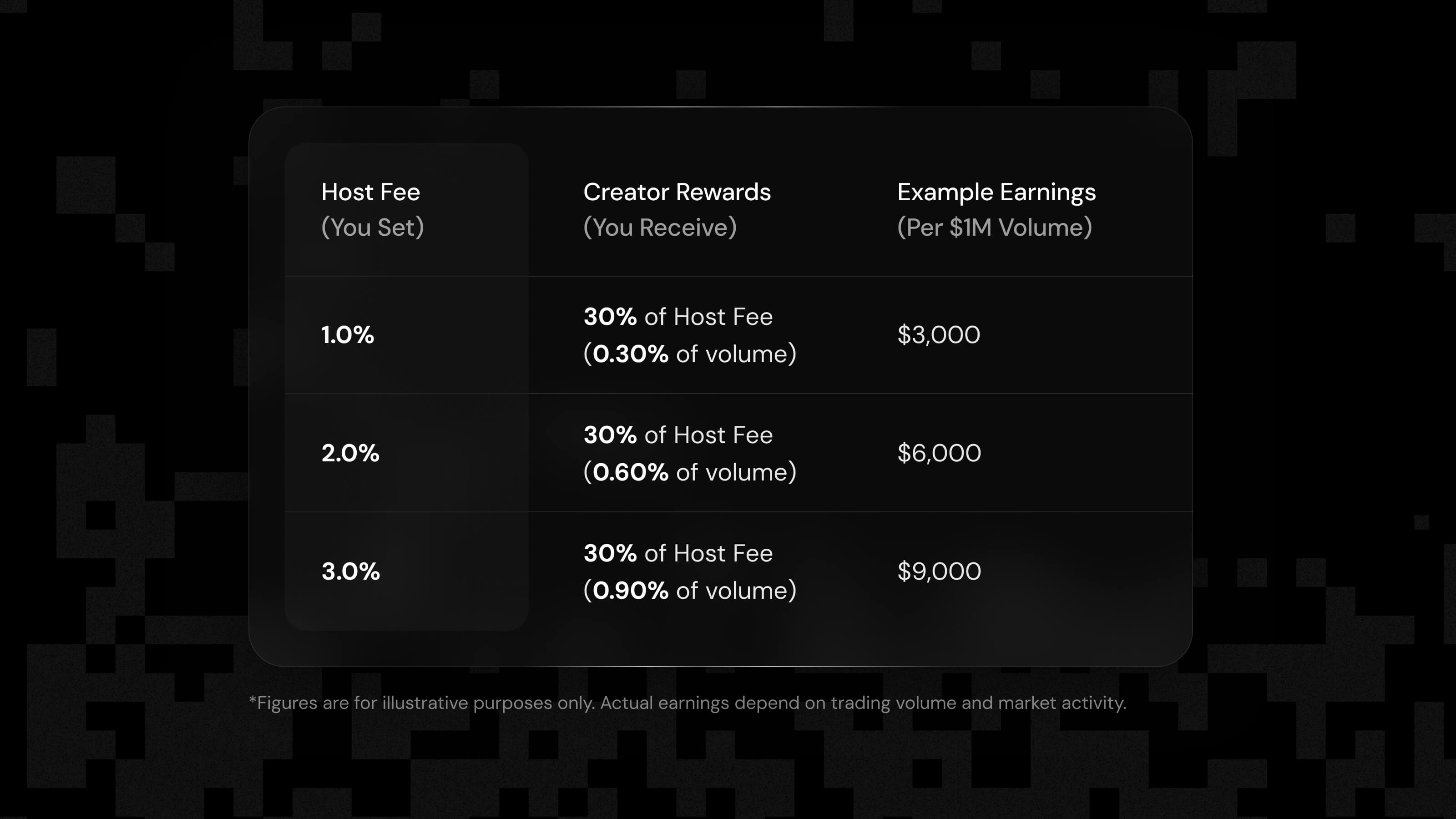- Why choose it: This is the only mode that allows you to adjust the Host Fee. Use this to increase your trading fee up to 3%, maximizing your recurring revenue share to 1.00%.