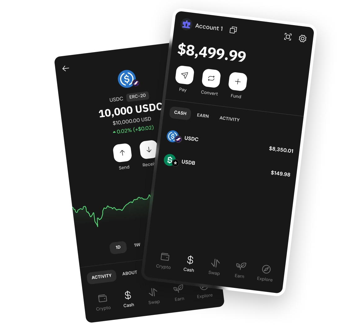Once your wallet is set up, you can access the Cash tab to view supported stablecoins, track balances, and send or receive funds across supported networks.